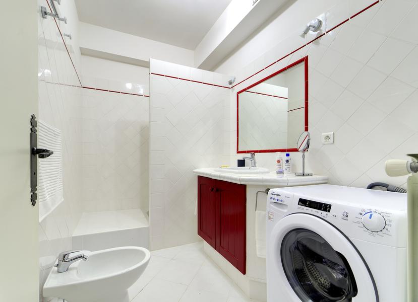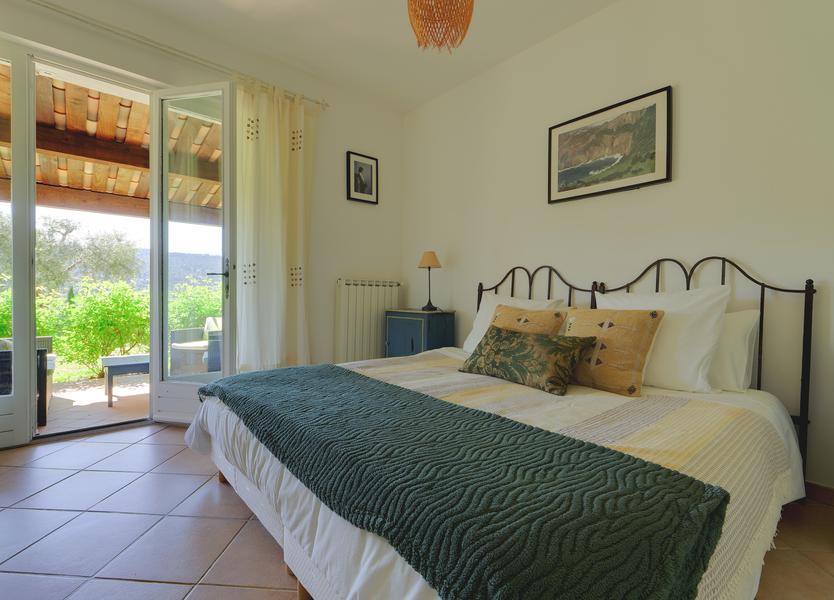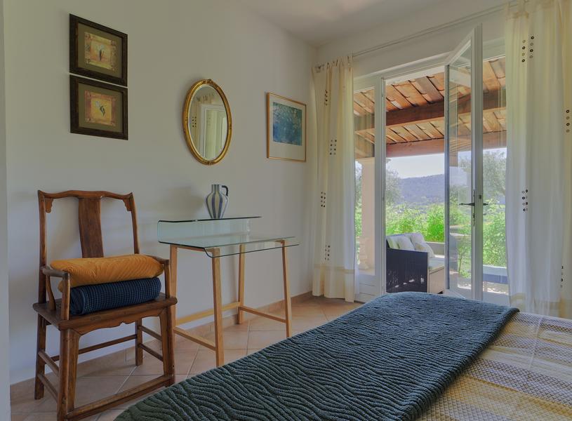 The bedroom opens onto the terrace and features a 180 x 200 bed (two 90 x 200 mattresses) and a separate dressing room. Bedding and towels are provided. Pets are not allowed.