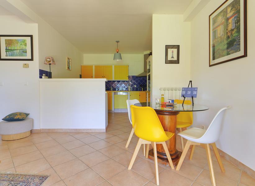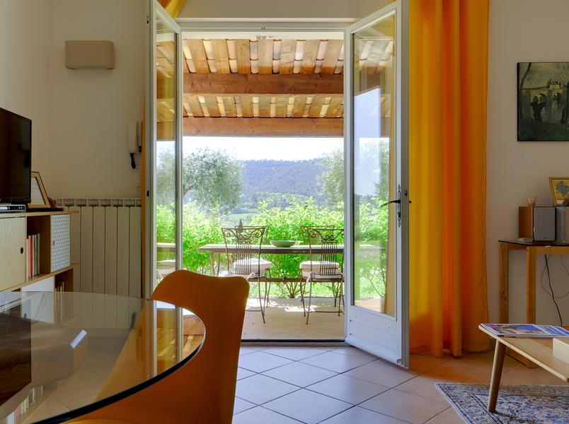 Set on a peaceful 7,000 m² shared property planted with olive trees, this 60 m² one-bedroom apartment is a calm base for two, just a five-minute walk from the historic centre of Moustiers-Sainte-Marie.