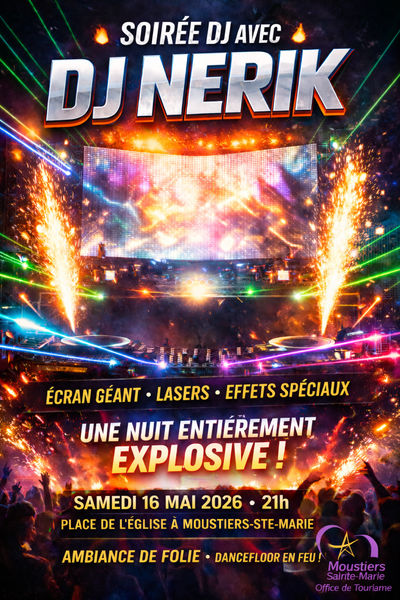 On Saturday, 16 May 2026, starting at 9 p.m., during the Ascension Day long weekend, come and dance the night away to DJ Nerik's carefully curated mix, accompanied by his giant screen, laser lights and super festive surprise effects!