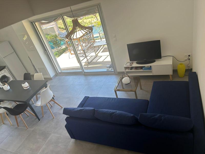 Ground floor: Living/dining room of 25m2 (with sofa bed offering the possibility of an additional bed). Fully-equipped open-plan kitchen (induction hob, pyrolysis oven, microwave, fridge-freezer, dishwasher, washing machine, etc.) with direct access to a terrace and private garden. Separate WC.