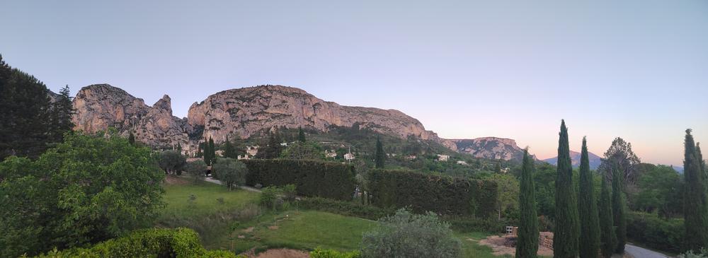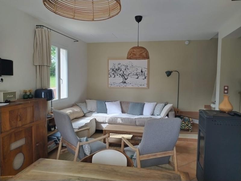 This beautiful south-facing house offers a stunning view of the village of Moustiers-Sainte-Marie, with a large landscaped garden and its private saltwater pool, just a 15-minute walk from the village center and 6 km from Lake Sainte-Croix and the Verdon Gorge.