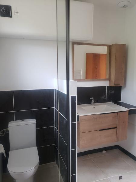 Ground floor: 28 m² living/dining room with fireplace and old beams. Separate, fully-equipped kitchen (ceramic hob, pyrolysis oven, microwave, fridge-freezer, dishwasher, washing machine, etc.) with direct access to the terrace and private garden. 1 bedroom with mezzanine measuring 10.5 m² (2 single beds or 1 king-size bed and 1 single bed on the mezzanine with 1 wardrobe). En-suite bathroom with shower and WC.