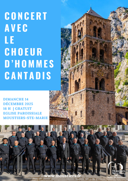 Dimanche 14 Décembre 2025 à 16h en l'Eglise Paroissiale, la chorale masculine "Cantadis" vous propose un voyage musical au travers d'un répertoire fait d’œuvres classiques, sacrées, et profanes.