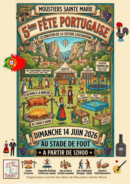 Dimanche 14 Juin 2026, Moustiers-Ste-Marie, pour la 5ème année, se met à l'heure portugaise pour une grande fête dès midi !