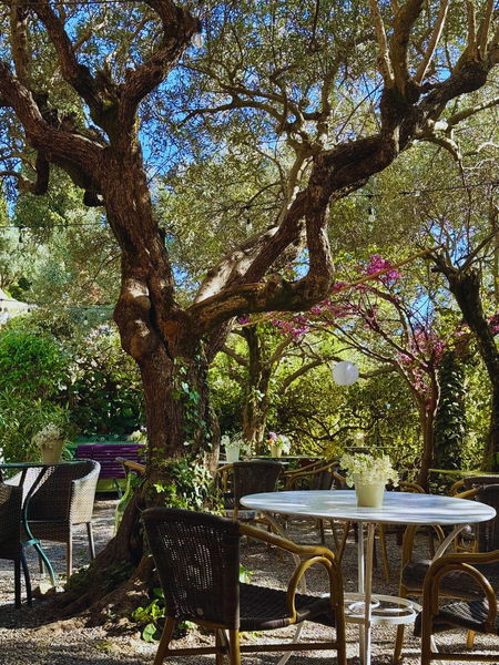 Dans un jardin d'olivier, nous vous accueillons du petit déjeuner jusqu'au goûter, ou pour un plat en toute simplicité.