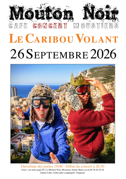 Samedi 26 Septembre 2026, Le Mouton Noir accueille "Le Caribou Volant" pour un concert intimiste !