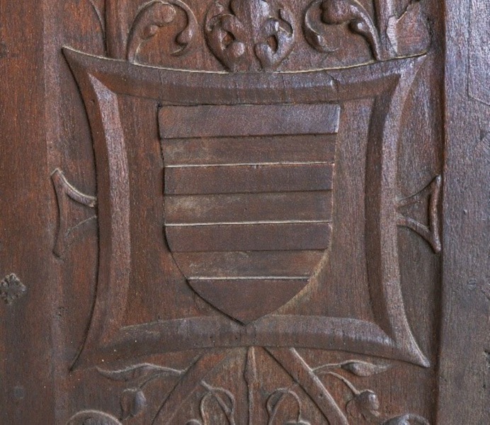 dont le texte (Jacques Lecugy) et les photographies (Luc Vang), d’une part, démontrent que les motifs qui y figurent ne sont pas seulement décoratifs mais qu’ils ont également une signification accordée à la vocation ancienne de la chapelle, «sanctuaire de répit» pendant des siècles et, d’autre part, permettent de donner un nom à la famille du donateur dont l’emblème figure en deux endroits, sculpté sur le portail.