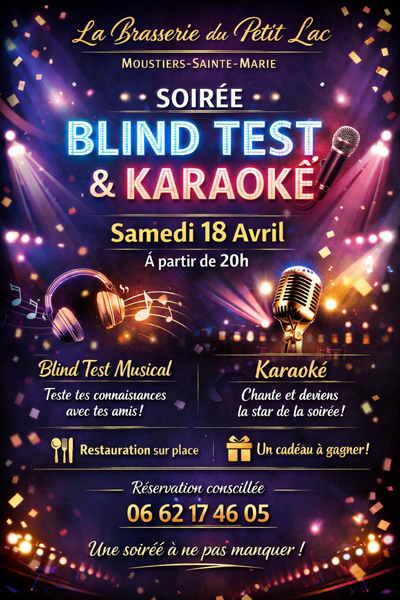 Samedi 18 Avril 2026, à partir de 20h, soirée blind test et karaoké à la Brasserie du Petit Lac !