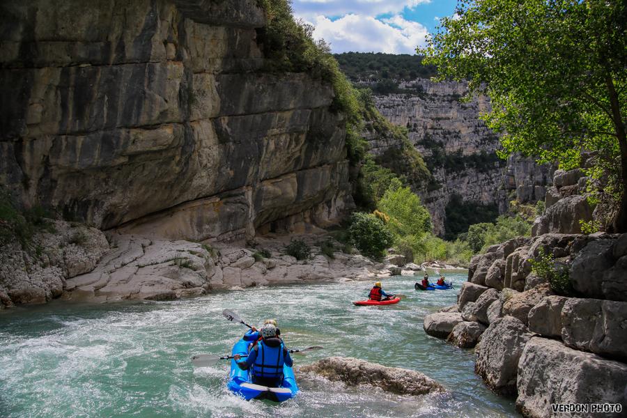 A bordo di un kayak tandem (se siete da soli) o del nostro mini-raft, scivolerete sulle acque turchesi del Verdon da Castellane al lago di Sainte Croix, accompagnati dalla vostra guida.